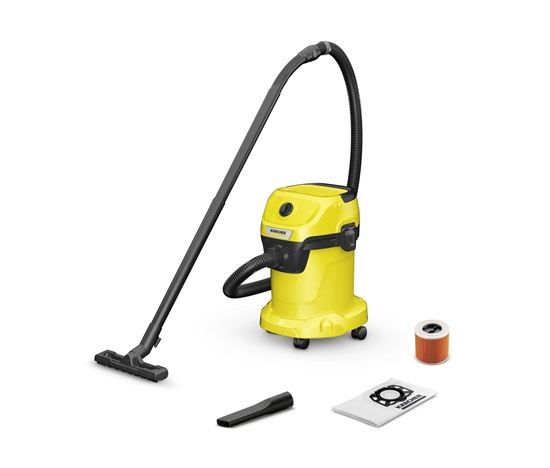 WD 3 V-17/4/20 je výkonný a energeticky úsporný s jmenovitým příkonem pouhých 1 000 wattů. Zařízení, sací hadice a podlahová hubice Clips jsou optimálně sladěny pro vynikající výsledky čištění suchých, mokrých, jemných i hrubých nečistot. Vysavač na mokré a suché vysávání zaujme kompaktním designem a robustní 17litrovou plastovou nádobou, 4m kabelem, 2m sací hadicí a fleecovým filtračním sáčkem. Díky jednodílnému kazetovému filtru lze vysávat mokré i suché nečistoty, aniž by bylo nutné filtr vyměňovat. Funkce foukání je užitečná pro čištění těžko přístupných míst. Hadici lze úhledně uložit a ušetřit tak místo zavěšením na hlavu zařízení. Kabel lze uložit na háček na kabel, trubky a podlahové hubice na nárazníku. Uzamykací systém Pull & Push umožňuje snadné otevírání a zavírání nádoby. Rukojeť vysavače lze odpojit a příslušenství lze připojit přímo k sací hadici. Další chytrá vlastnost: nářadí a malé součástky lze uložit na povrch na hlavě zařízení. Ergonomicky tvarovaná rukojeť zajišťuje pohodlné přenášení.