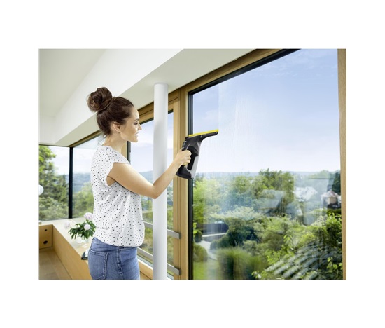 Pomocník určený k mytí oken výkladů a prosklených ploch. Zařízení sestává ze dvou částí. Hubice s nádržkou na vodu s čistícím médiem, rozprašovačem a stírací plochou s mopem. Touto hubicí se na sklo nanese voda s čistícím přípravkem a mopem se okno umyje. Druhou část tvoří hubice s nádobkou na znečištěnou vodu, stírací lištou a sacím motorem napájeným akumulátorem. Touto hubicí se znečištěná vody stáhne a vysaje do zásobníku.