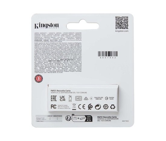 Kingston DataTraveler Exodia S je základní úložné řešení kompatibilní s USB 3.2 Gen 1 pro notebooky, stolní počítače a další digitální zařízení. DT Exodia S umožňuje snadný přenos a pohodlné ukládání dokumentů, videí, hudby a dalších dat. Disk DT Exodia S s kapacitou až 512 GB má otočné víčko dostupné v různých barvách. Díky svému designu je šikovným řešením pro ukládání dat na cestách v práci, ve škole nebo doma. Na disk DT Exodia S se vztahuje pětiletá záruka, bezplatná technická podpora a legendární spolehlivost společnosti Kingston.
