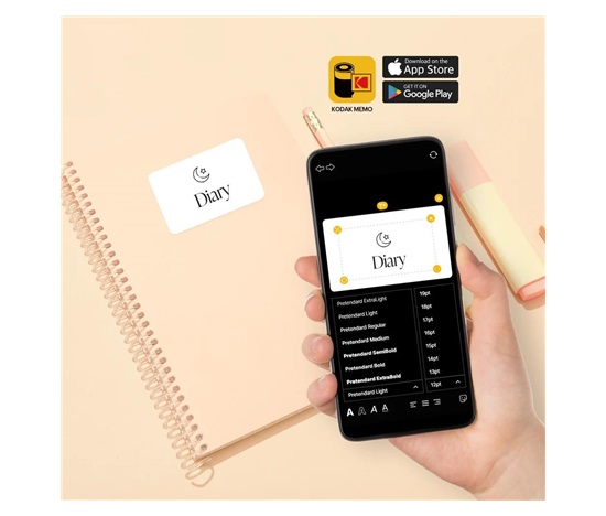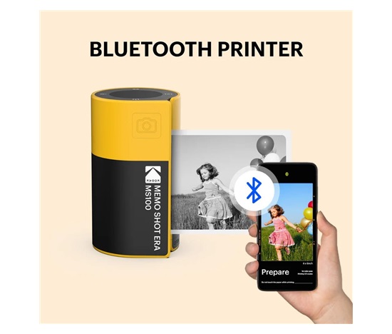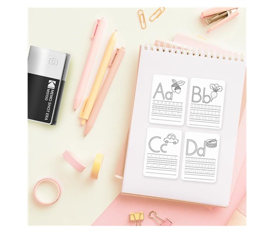Fotoaparát s tiskem etiket inspirovaný ikonickým designem filmových kazet Kodak. Pořiďte snímky a okamžitě je vytiskněte, nebo připojte telefon a tiskněte obrázky z galerie na etiketový papír o velikosti 2,7 × 1,8″ prostřednictvím aplikace KODAK MEMO.