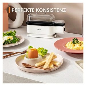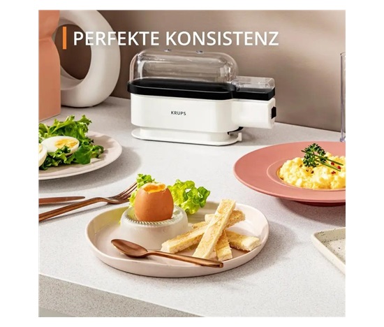 Vychutnejte si vždy lahodná vejce uvařená přesně podle vašich představ! S vařičem vajec KRUPS je příprava dokonalých vajec hračkou, ať už je máte rádi měkká a tekutá, nebo středně uvařená a tvrdá. Navíc jeho kompaktní design šetří místo ve vaší kuchyni. Vaření vajec nikdy nebylo snazší, a to díky propichovači vajec, který zabraňuje jejich prasknutí, a odnímatelnému držáku vajec, který vám umožní vejce rychle a snadno ochladit. Stačí počkat na pípnutí, které vám oznámí, že vejce jsou hotová.