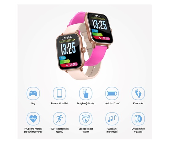 Držet děti od technologií je v podstatě nemožné, zvláště teenagery. Když už je ale mají, ať jsou jim maximálně užitečné. Chytré hodinky LAMAX BCool2 Play právě takovými parťáky jsou, dokonce umí sledovat zdravotní stav svého nositele. Primárně hodinky ukážou na přehledném displeji čas, podobu ciferníku si přitom lze vybrat. Slouží ale taky jako handsfree pro telefon díky BT Volání, od vybraných aplikací v mobilu můžou posílat notifikace a ovládat s nimi jde i multimédia jako třeba přehrávání muziky. Tyhle chytrý hodinky rozhýbou i pohodlného puberťáka, jsou přímo určeny k pohybu. Jejich 100+ sportovních režimů a krokoměr jasně ukážou, že vysedávání už bylo dost. Stejně důležitý je ale po námaze i odpočinek, hlavně kvalitní spánek a jeho sledování zvládají hodinky taky na výbornou. Co se hodí při plánování výprav za kámoši je předpověď počasí, dálková samospoušť zase pomůže pořídit parádní fotky celý partičky, který by s mobilem v ruce nešly. Užívat si výhod hodinek jde bez problémů až 7 dnů na jedno nabití, takže chvilky nudy si lze zkrátit hraním jedné ze dvou her.