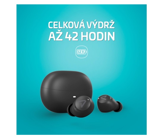 Samotný sluchátka vydrží až 10 hodin na jedno nabití a dalších 32 hodin ti přidá krabička. Dohromady získáš 42 hodin poslechu na jedno nabití. Na tak malý a skladný pouzdro naprostá pecka!