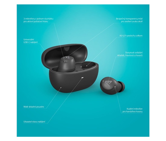 Do každýho sluchátka jsme dali tři mikrofony, co umí dokonale potlačit okolní hluk (ANC), a přitom vůbec nezkreslit přehrávanou hudbu. Otravných zvuků v MHD, letadle nebo ve škole a v práci už bylo dost. Teď je čas poslouchat, co chceš – samozřejmě v parádní kvalitě. Někdy je kvůli bezpečí lepší okolí vnímat. Od toho tu je transparency režim, který cizí zvuky zesiluje a ty si ani při placení v krámu nebo na rušný křižovatce nemusíš sluchátka sundavat.