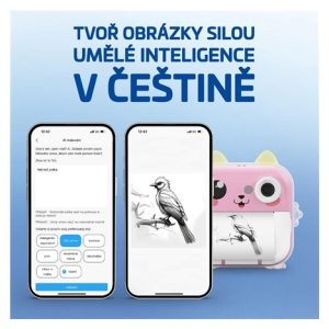 Foťák je propojený s chytrou aplikací v češtině, takže jeho ovládání zvládnou i menší děti. Aplikace toho ale umí mnohem více. Kromě tisku fotek, poznámek nebo samolepek přímo z telefonu zvládá i skenování ručně psaných zápisků, překlady textů z obrázků, AI vybarvování, tvorbu obrázků pomocí umělé inteligence nebo převod fotografií do animovaného stylu. Stačí pár kliknutí a děti si samy vytvoří obrázky přesně podle své představivosti.