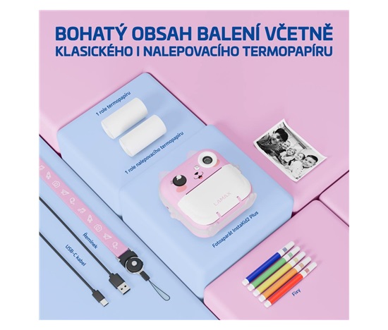 Objevte kouzlo zachycených momentů, které si vaše děti vytisknou během pár vteřin. Dětský fotoaparát LAMAX InstaKid2 Plus s okamžitým tiskem není jen roztomilý na pohled. S českou aplikací, vysokým rozlišením fotek i videa a sadou kreativních nástrojů se stává zábavným parťákem na výlety i do pokojíčku. Děti si s ním nejen vyfotí své zážitky, ale hned si je i vytisknou,vybarví přiloženými fixami a nalepí do deníku nebo kamkoliv budou chtít. Pomocí aplikace pak zvládnou tisknout fotky a poznámky z telefonu, skenovat texty ze sešitů, překlápět snímky do animovaného stylu nebo si s pomocí AI vybarvit černobílé obrázky. A když si od focení chtějí na chvíli odpočinout? O zábavu se postarají i vestavěné hry.LAMAX InstaKid2 Plus fotoaparát podporuje kreativitu, samostatnost i hravé učení a kdo ví, třeba právě tento foťáček odstartuje kariéru vašeho dítěte ve světe fotografií a filmu.