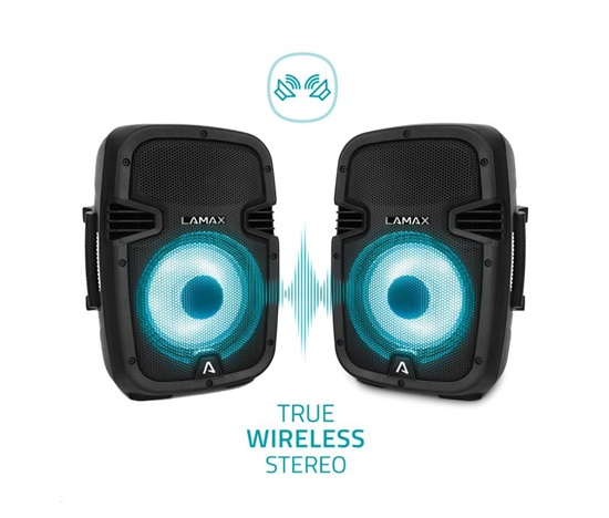Propoj bezdrátově dva PartyBoomBoxy a znásob výkon celé sestavy. Funkce zajistí, že v přehrávání nebude ani nejmenší zpoždění a podá 100% stereo.