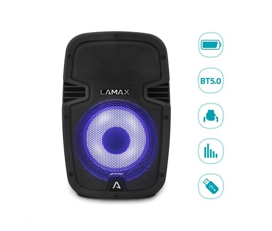 LAMAX PartyBoomBox300 tě přesune do našlápnutýho hudebního vesmíru. Tenhle reprák ti roztancuje každou houseparty, oslavu nebo grilovačku s partou. Vnitřní i venkovní prostory naplní parádním a výkonným soundem, nezalekne se stříkanců vody, vydrží hrát až 16 hodin na baterku, připojíš se k němu přes Bluetooth i kabelem a hlavně ho zvládneš snadno vzít s sebou.