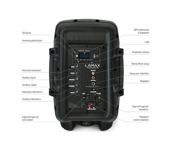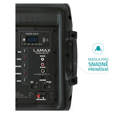 Ať chceš ostatním předvést svoje DJský umění, hru na kytaru, připojit mikrofon a pobavit se u karaoke nebo jenom poslouchat oblíbený songy, LAMAX PartyBoomBox300 je to, co potřebuješ. Špičkový výkon až 300 W ozvučí celou zahradu a přímo na repráku můžeš měnit intenzitu basů a výšek. Nech beaty dunět a dej si pozor, ať na tebe nepřijdou sousedi, protože tahle jízda bude hodně nahlas.
