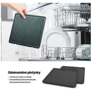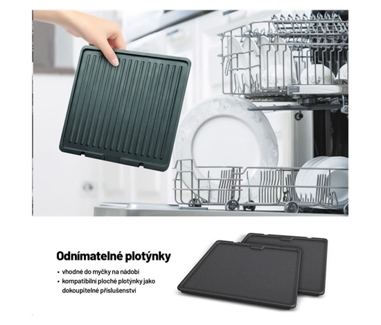 Obě grilovací plotýnky jsou odnímatelné a vhodné do myčky nádobí.