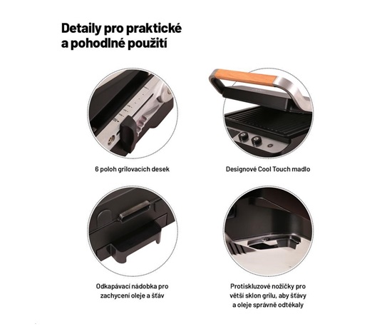 K manipulaci s grilem slouží designové madlo v dřevěném vzhledu s funkcí Cool Touch.