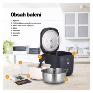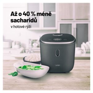 Chcete-li jíst zdravěji, víceučelový rýžovar Lauben Low Sugar Rice Cooker 3000AT vám nesmí chybět. Jeho funkce low sugar zbaví rýži až 40 % sacharidů. Přístroj si poradí se všemi druhy rýže, ale i s dalšími surovinami, například luštěninami. Zvolit můžete ze 6 režimů, které je ale možné ručně upravit. Prémiový nepřilnavý keramický povrch jeho 3l nádoby připraví jídlo pro celou rodinu bez nutnosti použití tuku a obav z připálení. Potěší funkcí Keep Warm, která udrží pokrmy teplé bez nebezpečí rozvaření, odložený start či ochrana proti přetečení a technologie Cool Touch, jejíž zásluhou se o rýžovar nepopálíte. Dotyková tlačítka usnadňují nastavení rýžovaru. Snadná údržba je samozřejmostí, stačí dát vnitřní části do myčky. Pro inspiraci jsme přibalili také kuchařku.