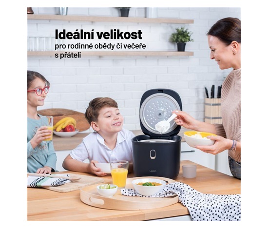 Designově vyladěný Lauben Low Sugar Rice Cooker 3000AT představuje ideální řešení pro velkou rodinu. Jídla připravíte s minimem tuku a nepřipálí se. Jeho 3l nádoba s prémiovým nepřilnavým keramickým povrchem se snadno udržuje, stačí ji vložit do myčky. Ovládání rýžovaru je velmi jednoduché prostřednictvím digitálního dotykového displeje. Pro zajištění bezpečnosti je přístroj vybaven ochranou proti přetečení díky mikrotlaku a technologií Cool Touch zajišťující, že se o vnější plášť nikdo nepopálí.