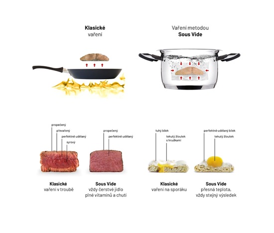 Metoda sous vide při vaření zachovává všechny živiny a vitaminy, k přípravě jídla nepotřebujete žádný tuk.