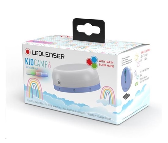 LEDLENSER KIDCAMP 6 je malá kapesní lucerna přizpůsobená speciálně pro citlivé dětské oči a dětské zacházení. Světlo je vhodné do stanů, karavanů, ale i do dětských pokojíků – zkrátka všude, kde je potřeba osvítit prostor příjemným neoslňujícím světlem. Svítilna je vybavena vestavěným hákem pro snadné uchycení. Možnost volby ze čtyř barev světla a funkce blikání navíc rozzáří každou dětskou oslavu.