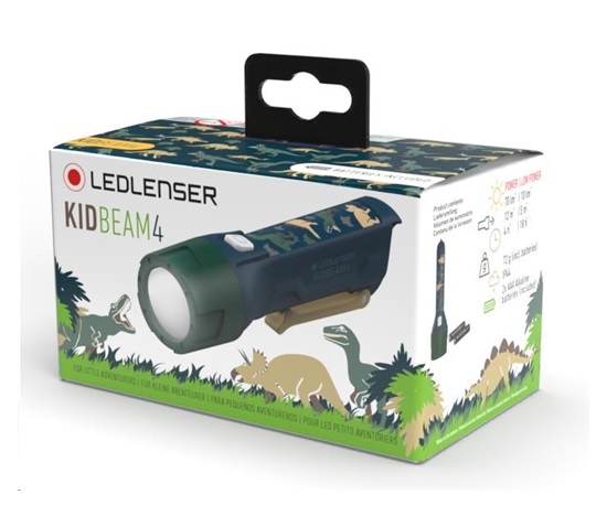 Nechejte děti objevovat svět s jejich první opravdovou baterkou. LEDLESNER KIDBEAM4 je ruční svítilna speciálně určená pro děti a jejich citlivé oči. Speciální technologie zajišťují, že je světelný tok pro děti naprosto bezpečný, nehrozí poškození zraku, zároveň však dostatečně výkonný a díky různým barvám světla i zábavný a multifunkční. Spolehlivý a bezpečný parťák pro děti na dětských táborech, v kempech či na výletech do přírody. Na výběr máte mezi chlapeckou variantou (s motivem dinosaurů) a dívčí (motiv duhy). Napájeno dvěma tužkovými bateriemi AAA.