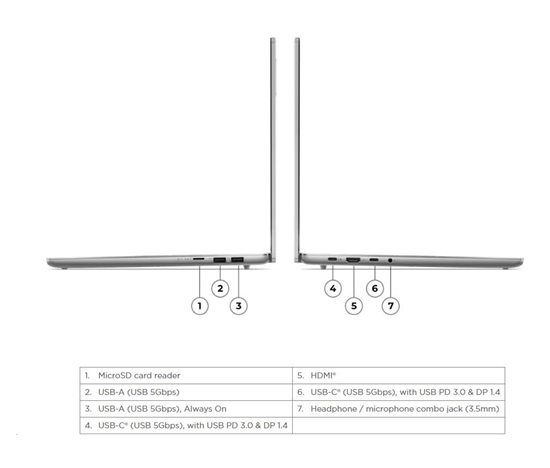 2x USB-C (USB 5Gbps / USB 3.2 Gen 1), with USB PD 3.0 and DisplayPort™ 1.4