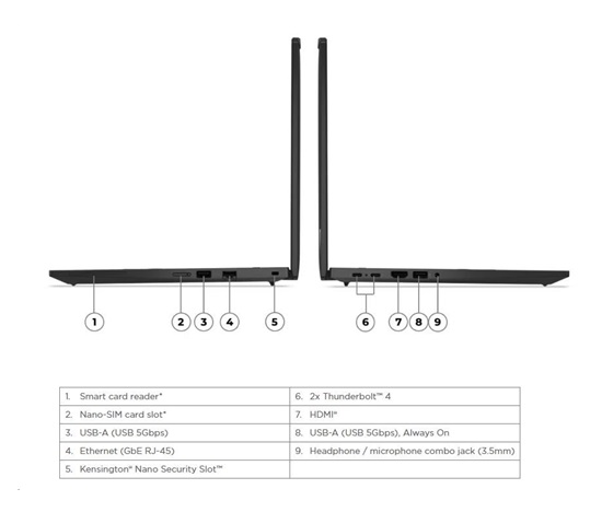 2x USB-C (Thunderbolt™ 4 / USB4 40Gbps), with PD 3.0 and DisplayPort™ 1.4