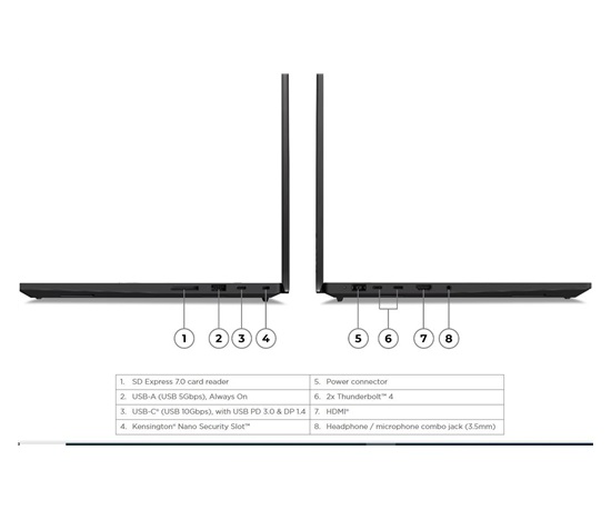 2x USB-C (Thunderbolt™ 4 / USB4 40Gbps), with USB PD 3.0 (135W input) and DisplayPort™ 2.1