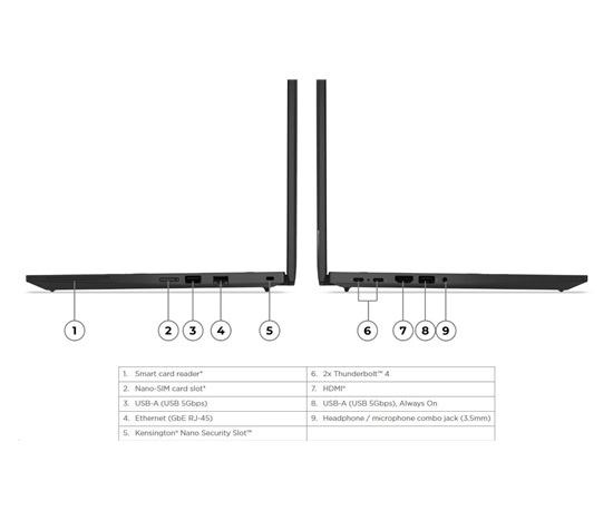2x USB-C (Thunderbolt™ 4 / USB4 40Gbps), with USB PD 3.0 and DisplayPort™ 1.4