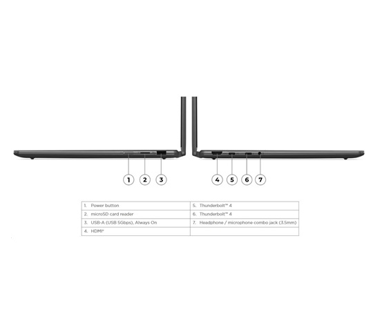 Standartné porty 2x USB-C (Thunderbolt™ 4 / USB4 40Gbps), with USB PD 3.1 and DisplayPort™ 2.1