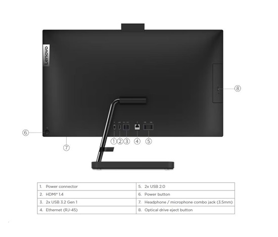 | Standardní porty | 2x USB 2.0 2x USB 3.2 Gen 1 1x HDMI 1.4 1x Ethernet (RJ-45) 1x napájecí konektor |