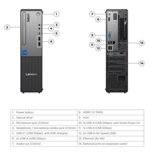 | Zadné porty | 2x USB-A (Hi-Speed USB / USB 2.0) 2x USB-A (USB 5Gbps / USB 3.2 Gen 1), one supports Smart Power On 1x HDMI 2.1 TMDS 1x VGA 1x Ethernet (RJ-45) 1x line-out (3.5mm) |