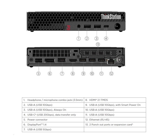 | Predné porty | 1x USB-C (USB 20Gbps / USB 3.2 Gen 2×2), data transfer only 1x USB-A (USB 10Gbps / USB 3.2 Gen 2), Always On 1x USB-A (USB 10Gbps / USB 3.2 Gen 2) 1x headphone / microphone combo jack (3.5mm) |