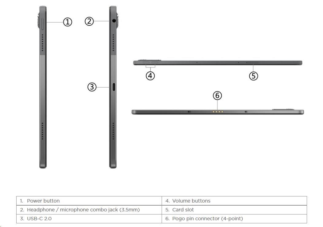 Typ displeje:IPS LED; Úhlopříčka displeje:11,6″; Rozlišení displeje:2000 x 1200; Procesor:MediaTek; Počet jader procesoru:8; Operační systém:Android; Frekvence (GHz):2,2; Operační paměť:4 GB; Vnitřní paměť:128 GB; Fotoaparát zadní (Mpix):13; Fotoaparát přední (Mpix):8; Funkce:Wi-Fi, Bluetooth; Konektory:USB-C, 3,5 mm jack; Baterie (mAh):7000-7999