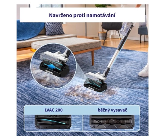 Rotační kartáč byl navržen abyste nemuseli neustále odmotávat vlasy a chlupy. Zároveň ale jeho textilní a gumové lamely fungují perfektně pro jejich odstranění. Vestavěný hřeben vlasy i srst od kartáče separuje do odpadní nádoby a udržuje ho tak čistý. LVAC 200 je ideálním nástrojem do domácnosti se zvířaty.
