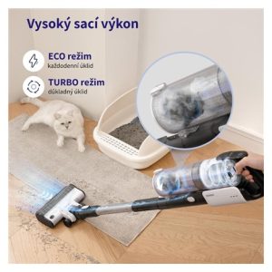 Vysavač nabízí dva sací režimy. ECO slouží pro běžný, každodenní úklid. TURBO mód je tu pak pro silné znečištění a důkladný úklid.