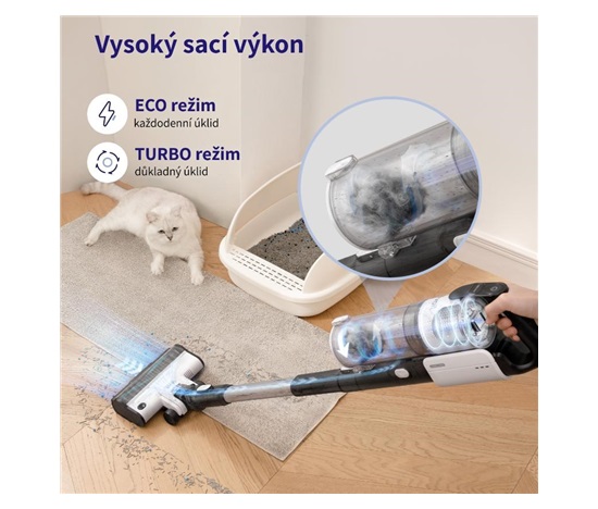 • 2 režimy, ECO pro každodenní úklid a Turbo pro důkladný úklid