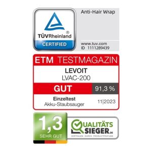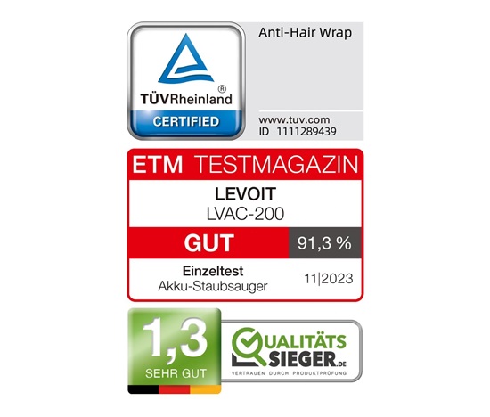 V nezávislém testu německého ETM Testmagazin dosáhl Levoit LVAC-200 vysokého hodnocení a známky GUT. V testu byla například naměřena ještě nižší hlučnost, než udává výrobce a to 73 dB v ECO režimu a 75 dB v Turbo režimu.