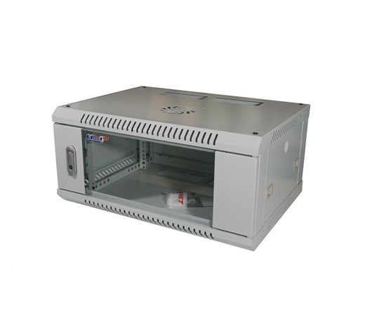 LEXI-Net 19″ nástěnný rozvaděč 4U 600×450, nosnost 60 kg, skleněné dveře, rozložený, šedý