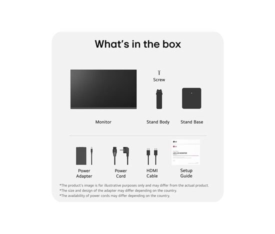 1. Tělo stojanu 2. Základna stojanu 3. Šrouby 4. Napájecí adaptér 5. Napájecí kabel 6. Kabel HDMI 7. Stručný návod k obsluze