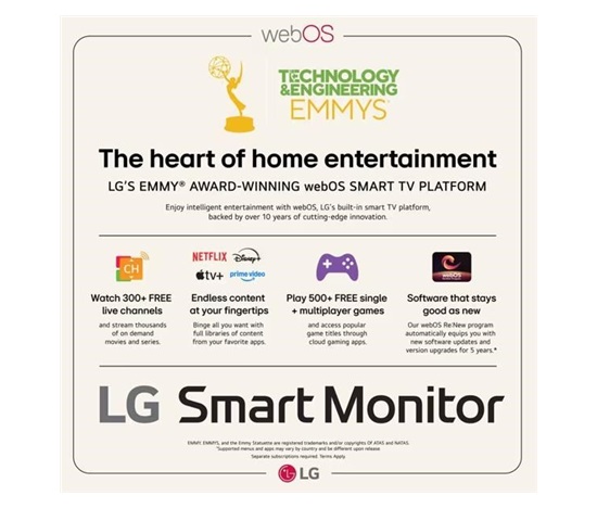 Díky systému webOS získáte snadný přístup k aplikacím jako Netflix, Prime Video, Disney+, YouTube, Apple TV a více než 300 bezplatným LG kanálům. Nechte si doporučit obsah na míru, objevujte aplikace jako Sport, Hry a LG Fitness a ovládejte vše pomocí dálkového ovladače nebo dotykem.