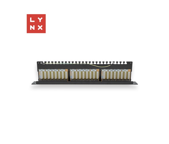 LYNX 19″ patch panel 24-port, STP Cat6a, 50µ, stíněný, černý