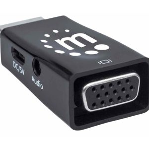 Mikroprevodník Manhattan HDMI na VGA umožňuje rýchle, jednoduché a pohodlné prepojenie medzi novším stolným počítačom, notebookom alebo iným zdrojom médií vybaveným rozhraním HDMI a existujúcim monitorom VGA, projektorom alebo iným zobrazovacím zariadením. Mikroprevodník Manhattan HDMI na VGA sa ľahko a rýchlo inštaluje a nevyžaduje si zložitú konfiguráciu ani nastavenie. Tento prevodník pomáha predĺžiť životnosť starších zobrazovacích zariadení VGA, aby ste mohli čo najlepšie využiť svoju investíciu a plne využiť jej hodnotu. Mikroprevodník Manhattan HDMI na VGA ponúka úsporné a spoľahlivé riešenie s nízkou spotrebou energie, takže používatelia môžu prejsť na šírku pásma HDMI, rozlíšenie, technológiu Deep Color a ďalšie funkcie bez toho, aby museli prechádzať na novšie a drahšie monitory a projektory. Jeho integrovaná konštrukcia typu „všetko v jednom“ pomáha dosiahnuť kompaktné, integrované riešenie, ktoré eliminuje zbytočné káble, spleť a neporiadok, aby boli inštalácie a pracovné priestory čisté a usporiadané. Jeho 3.5 mm stereo port umožňuje prevodníku prenášať zvuk do externého zvukového zariadenia a jeho port Micro-USB umožňuje v prípade potreby dodatočné napájanie.
