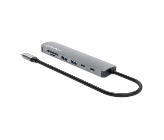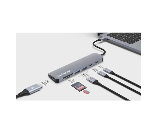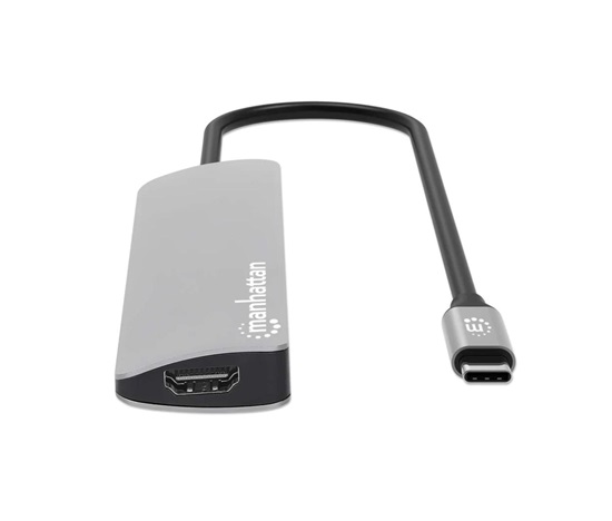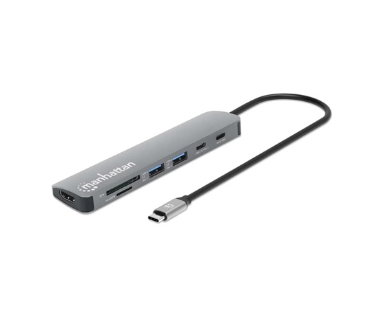 MANHATTAN Dokovací stanice USB-C 7v1, 1xHDMI, 2xUSB-C, 2xUSB, čtečka SD karet, šedá