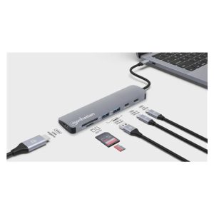 Rozšiřte možnosti připojení svého zařízení pomocí multiportového adaptéru Manhattan 7 v 1. Tato všestranná dokovací stanice vyplní mezery ve vašem notebooku, MacBooku, tabletu nebo telefonu a nabízí základní připojení, jako je HDMI, PD, čtečka karet a porty USB.