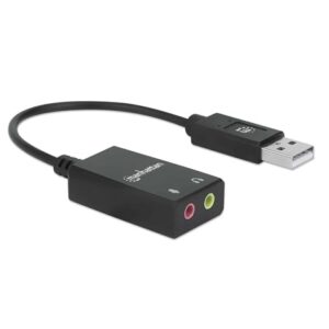 USB audio adaptér Manhattan, ktorý je ideálny pre stolové počítače, notebooky a netbooky, okamžite vytvorí vstupné a výstupné porty pre mikrofón prostredníctvom akéhokoľvek portu USB. Adaptér 3.v 5 mm portoch sú bezpečne umiestnené konektory pre náhlavné súpravy, mikrofóny a reproduktory, takže môžete bez obáv pracovať – a hrať sa. Vďaka funkciám plug-and-play a hot-swap môže tento zvukový adaptér USB plne nahradiť nefunkčnú zvukovú kartu, obísť poškodený zvukový port alebo všeobecne zlepšiť prístup k zvukovým funkciám vášho zariadenia bez špeciálnych ovládačov alebo softvéru. Vstavaný zosilňovač triedy B využíva na zabezpečenie vysokokvalitného zvuku napájanie zo zbernice USB, takže nie je potrebné externé napájanie ani ďalšie káble. Podpora zvuku, 2.1 stereofónny zvuk a vstavané zvukové efekty s 10-pásmovým ekvalizérom poskytujú bohaté, vysokokvalitné zážitky so známym pohodlím a funkciami USB.