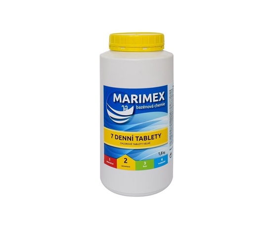 Pomalurozpustné velké tablety pro průběžné udržování potřebné hladiny chloru po použití granulátu Marimex Start. Protiporostový prostředek účinný proti řasám, plísním, bakteriím a virům. Tablety se přidávají sběračem (skimmerem), dávkovačem vestavěným do cirkulačního potrubí nebo plovákem při zapnutém filtračním zařízení.
