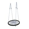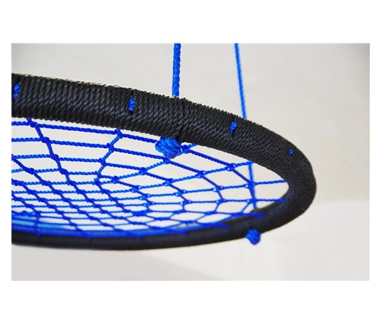 Závěsná houpačka ve tvaru kruhu je svým průměrem 100 cm a nosností až 150 kg ideální nejen pro děti, ale i dospělé. Velká sedací plocha houpačky nabízí volnost při houpání i dostatečný prostor pro lenošení. Houpačka je zavěšena na 4 délkově nastavitelných lanech, která jsou zakončena kovovými kroužky pro zavěšení na nosnou konstrukci.