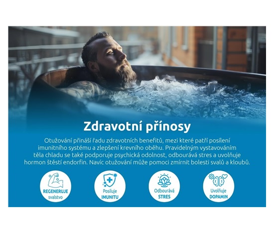 Pravidelné otužování v kádích přináší řadu zdravotních výhod. Posiluje imunitní systém, podporuje zdravý krevní oběh a zlepšuje psychickou odolnost. Odbourává stres, uvolňuje endorfiny a pomáhá zmírňovat bolesti svalů a kloubů. Ochlazovací káď tak není jen prostředkem pro relaxaci, ale také cestou ke zlepšení fyzické i duševní pohody.