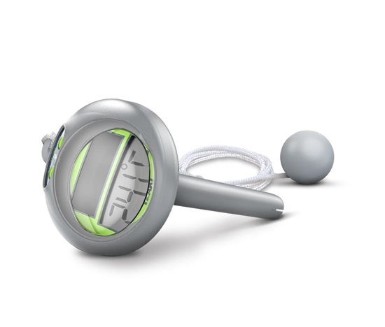 Digitální ponorný solární teploměr určený k měření teploty vody v bazénu.