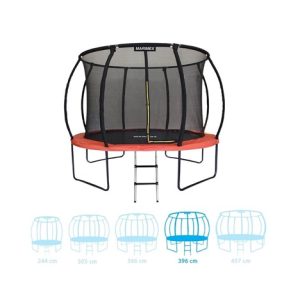 Trampolína Marimex Premium je skvělým doplňkem každé zahrady. Děti skákání na trampolíně milují a při skákání si snadno zacvičí i dospělí – nosnost je až 150 kg. Dokonalou stabilitu zajišťují čtyři nohy ve tvaru písmene U.