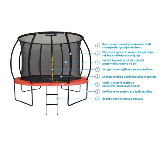 Na bezpečnostní prvky trampolín Marimex Premium je kladen velký důraz, proto jsou řazeny mezi nejbezpečnější a nejspolehlivější na českém trhu.