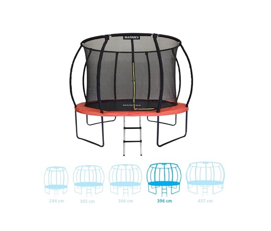 Trampolíny Marimex Premium nevynikají pouze novým designem a barevností, ale také větší stabilitou, pevností a bezpečností. Bezpečnost zajišťují zesílené ochranné kryty pružin a nová technologie T-spojů. Vnitřní ochrannou síť podpírá osm dynamicky prohnutých tyčí a napnutou ji drží zpevněná horní obruč. Skákací plocha je vyrobena z velmi odolného a neabrazivního materiálu s vysokou životností.