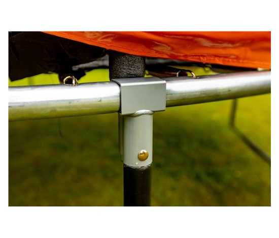 - Horní obruč trampolíny spojena se stojnami pomocí T-spojů; T-spoje přispívají ke stabilitě trampolíny a snazší montáži