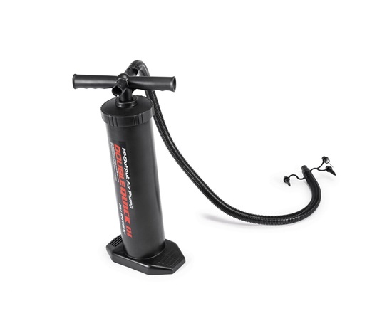Velká ruční pumpička pro rychlé nafouknutí postelí, vodních hraček nebo míčů (fotbal, basketbal, atd.). Variabilní redukce, jehla na míče.